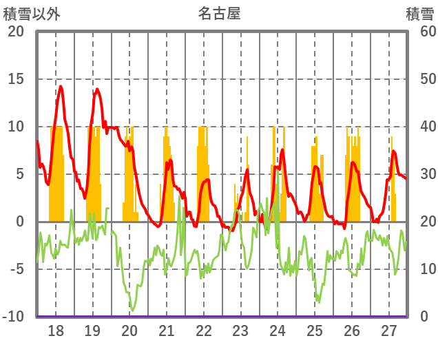 | 日 | 時 | 気温 | 降水 | 風向/風速 | 日照 | 積雪 | 降雪 |