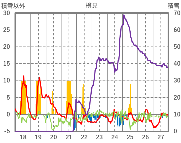 | 日 | 時 | 気温 | 降水 | 風向/風速 | 日照 | 積雪 | 降雪 |