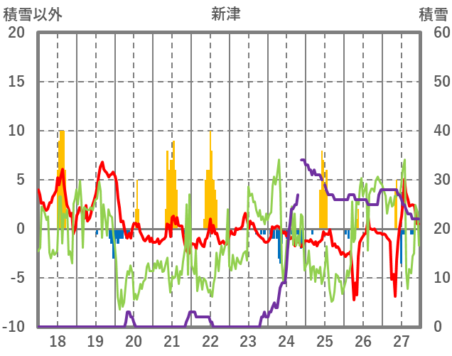 | 日 | 時 | 気温 | 降水 | 風向/風速 | 日照 | 積雪 | 降雪 |