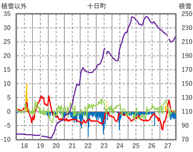 | 日 | 時 | 気温 | 降水 | 風向/風速 | 日照 | 積雪 | 降雪 |