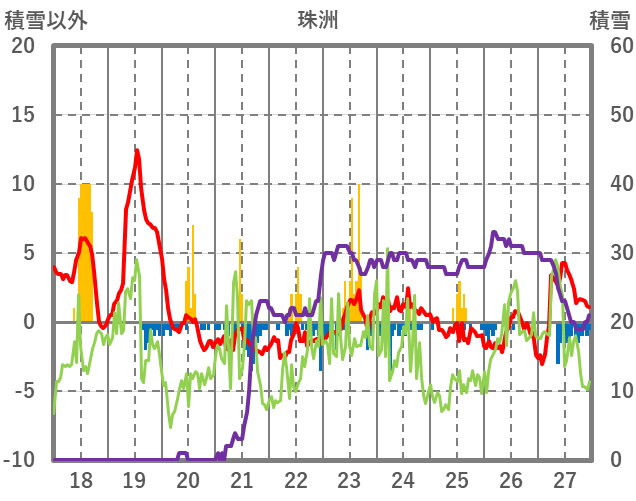 | 日 | 時 | 気温 | 降水 | 風向/風速 | 日照 | 積雪 | 降雪 |