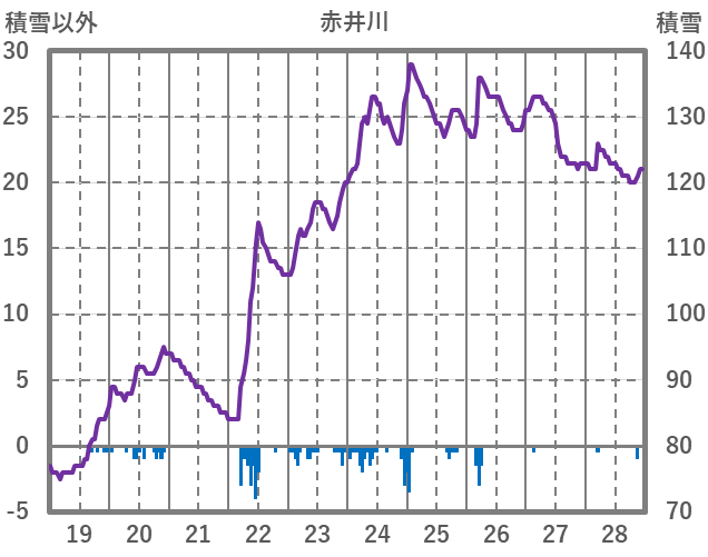 | 日 | 時 | 気温 | 降水 | 風向/風速 | 日照 | 積雪 | 降雪 |