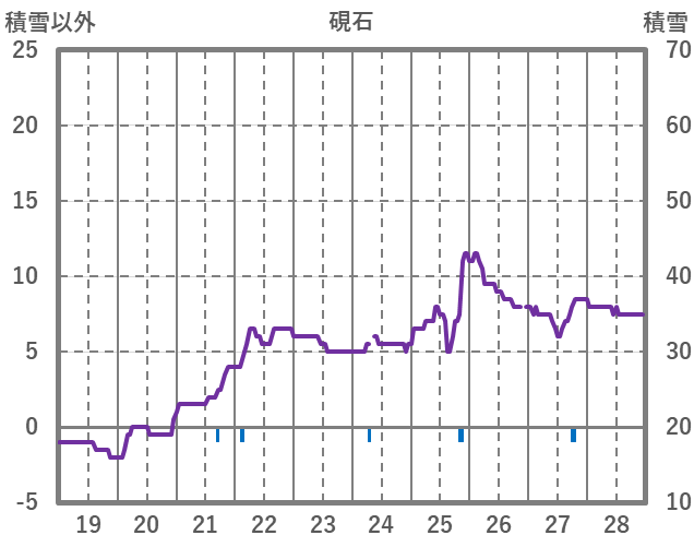| 日 | 時 | 気温 | 降水 | 風向/風速 | 日照 | 積雪 | 降雪 |