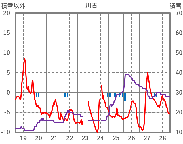 | 日 | 時 | 気温 | 降水 | 風向/風速 | 日照 | 積雪 | 降雪 |