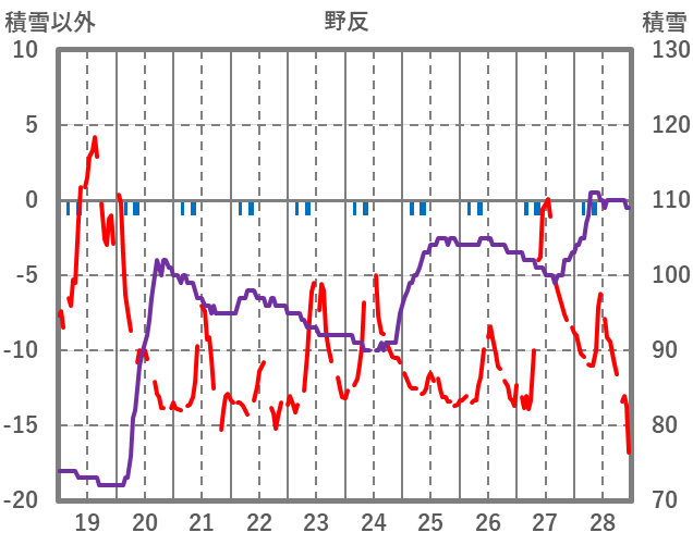 | 日 | 時 | 気温 | 降水 | 風向/風速 | 日照 | 積雪 | 降雪 |