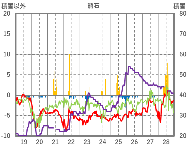 | 日 | 時 | 気温 | 降水 | 風向/風速 | 日照 | 積雪 | 降雪 |