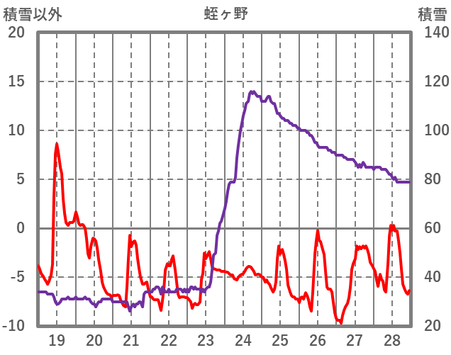 | 日 | 時 | 気温 | 降水 | 風向/風速 | 日照 | 積雪 | 降雪 |