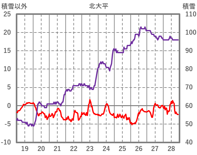 | 日 | 時 | 気温 | 降水 | 風向/風速 | 日照 | 積雪 | 降雪 |