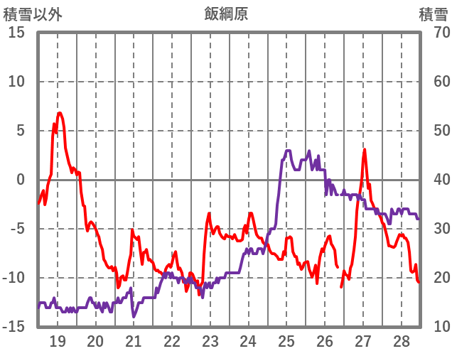 | 日 | 時 | 気温 | 降水 | 風向/風速 | 日照 | 積雪 | 降雪 |