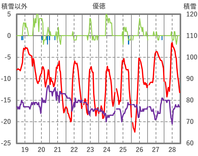 | 日 | 時 | 気温 | 降水 | 風向/風速 | 日照 | 積雪 | 降雪 |
