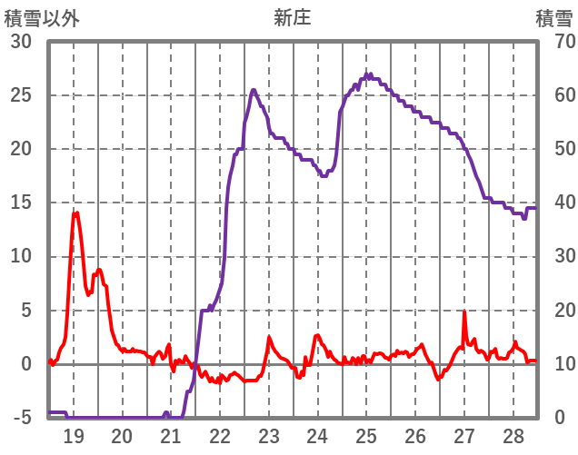 | 日 | 時 | 気温 | 降水 | 風向/風速 | 日照 | 積雪 | 降雪 |