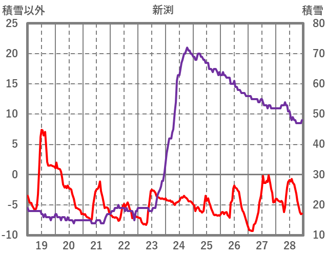 | 日 | 時 | 気温 | 降水 | 風向/風速 | 日照 | 積雪 | 降雪 |