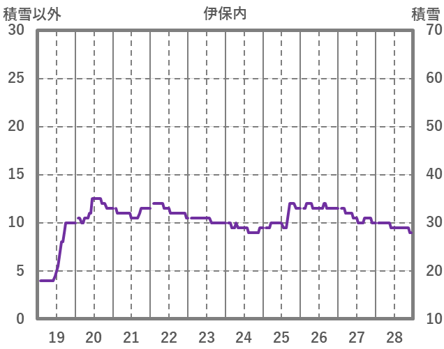 | 日 | 時 | 気温 | 降水 | 風向/風速 | 日照 | 積雪 | 降雪 |