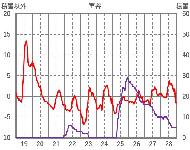 | 日 | 時 | 気温 | 降水 | 風向/風速 | 日照 | 積雪 | 降雪 |