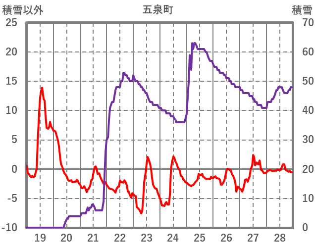 | 日 | 時 | 気温 | 降水 | 風向/風速 | 日照 | 積雪 | 降雪 |