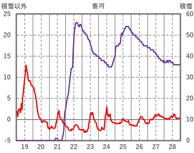| 日 | 時 | 気温 | 降水 | 風向/風速 | 日照 | 積雪 | 降雪 |