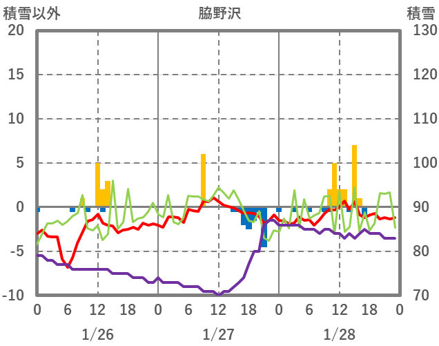 | 日 | 時 | 気温 | 降水 | 風向/風速 | 日照 | 積雪 | 降雪 |