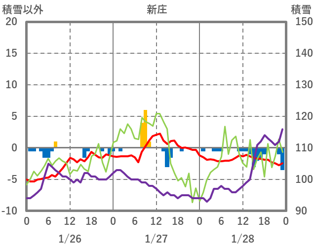 | 日 | 時 | 気温 | 降水 | 風向/風速 | 日照 | 積雪 | 降雪 |