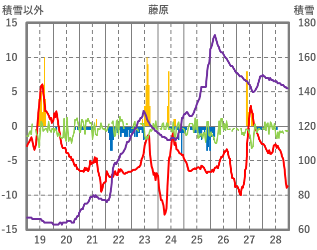 | 日 | 時 | 気温 | 降水 | 風向/風速 | 日照 | 積雪 | 降雪 |
