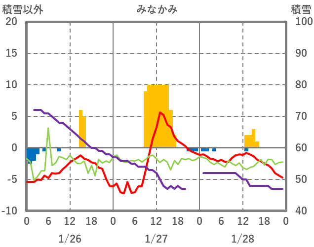 | 日 | 時 | 気温 | 降水 | 風向/風速 | 日照 | 積雪 | 降雪 |
