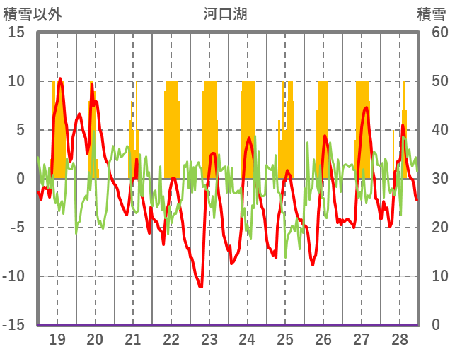 | 日 | 時 | 気温 | 降水 | 風向/風速 | 日照 | 積雪 | 降雪 |