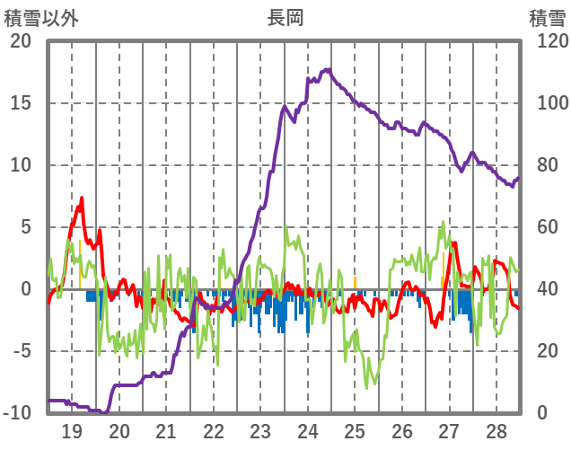 | 日 | 時 | 気温 | 降水 | 風向/風速 | 日照 | 積雪 | 降雪 |