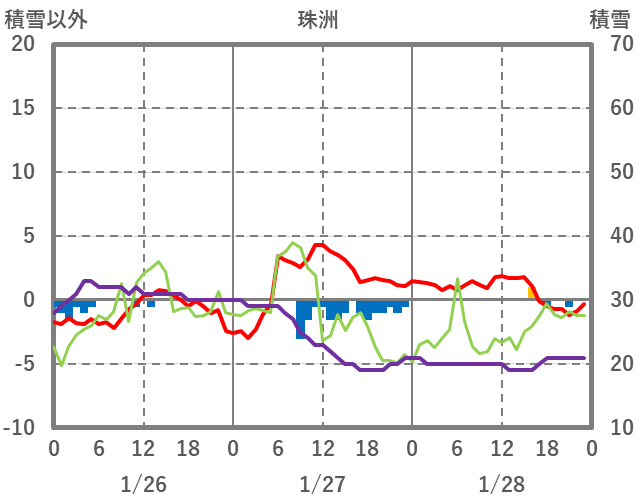 | 日 | 時 | 気温 | 降水 | 風向/風速 | 日照 | 積雪 | 降雪 |