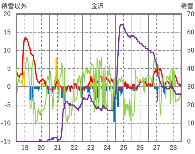 | 日 | 時 | 気温 | 降水 | 風向/風速 | 日照 | 積雪 | 降雪 |