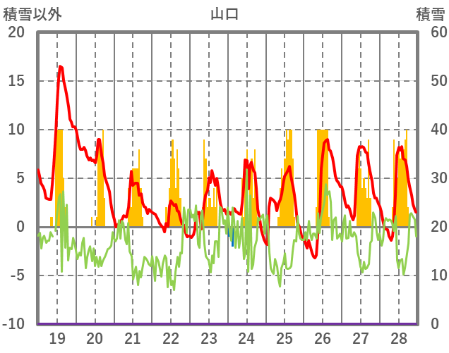 | 日 | 時 | 気温 | 降水 | 風向/風速 | 日照 | 積雪 | 降雪 |
