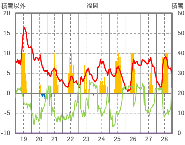 | 日 | 時 | 気温 | 降水 | 風向/風速 | 日照 | 積雪 | 降雪 |
