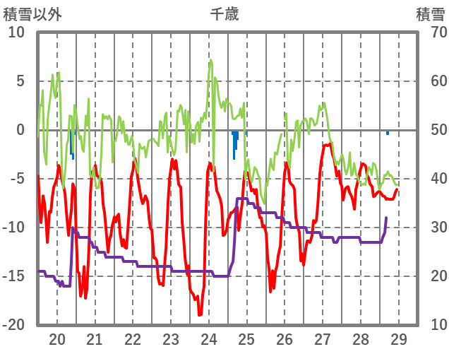 | 日 | 時 | 気温 | 降水 | 風向/風速 | 日照 | 積雪 | 降雪 |