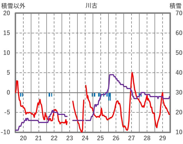 | 日 | 時 | 気温 | 降水 | 風向/風速 | 日照 | 積雪 | 降雪 |