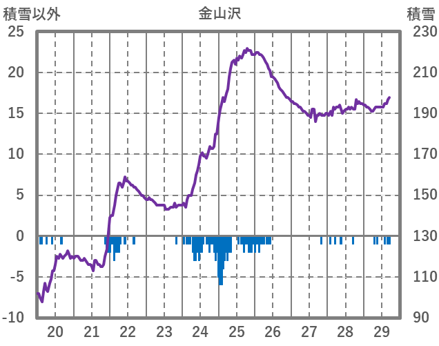 | 日 | 時 | 気温 | 降水 | 風向/風速 | 日照 | 積雪 | 降雪 |