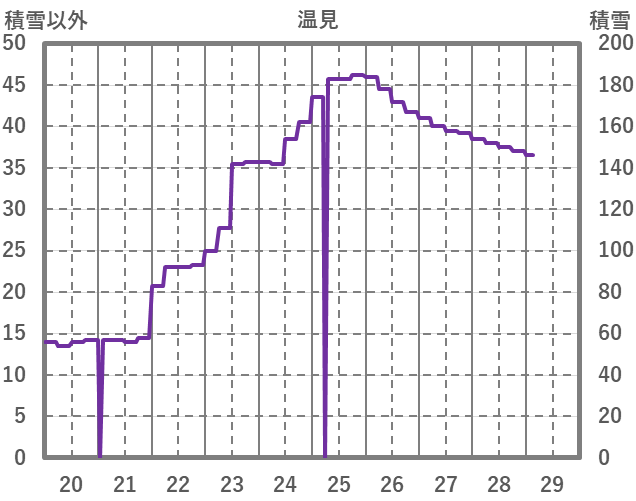 | 日 | 時 | 気温 | 降水 | 風向/風速 | 日照 | 積雪 | 降雪 |