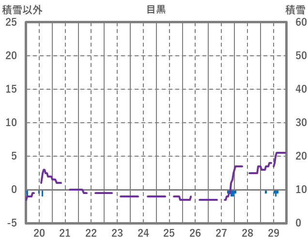 | 日 | 時 | 気温 | 降水 | 風向/風速 | 日照 | 積雪 | 降雪 |