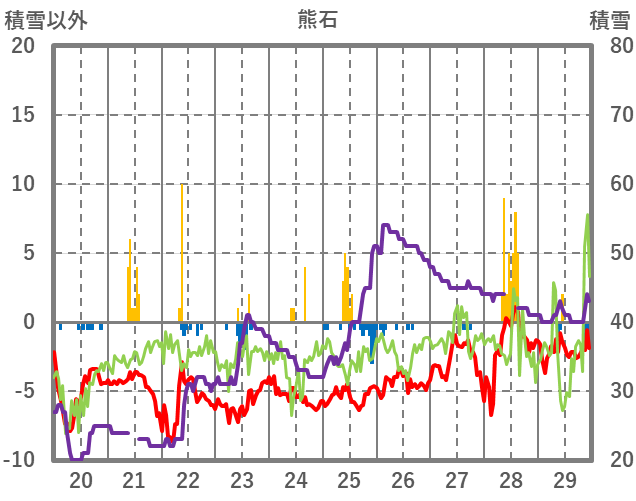| 日 | 時 | 気温 | 降水 | 風向/風速 | 日照 | 積雪 | 降雪 |