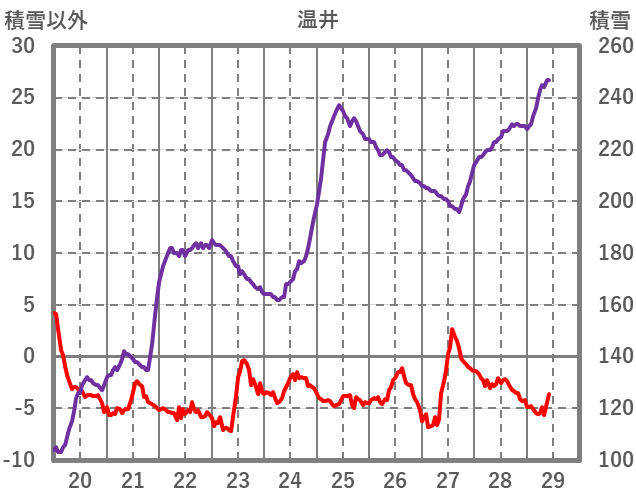 | 日 | 時 | 気温 | 降水 | 風向/風速 | 日照 | 積雪 | 降雪 |