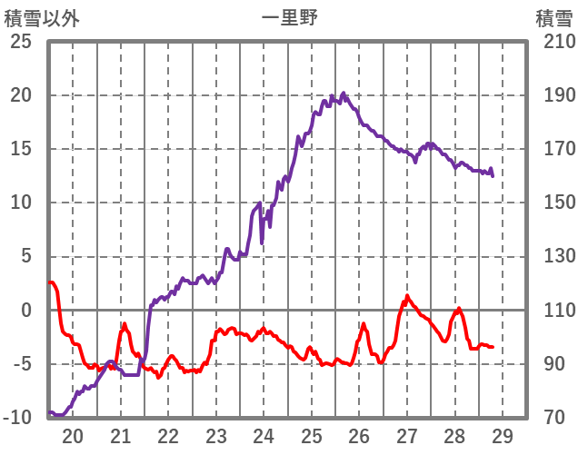 | 日 | 時 | 気温 | 降水 | 風向/風速 | 日照 | 積雪 | 降雪 |