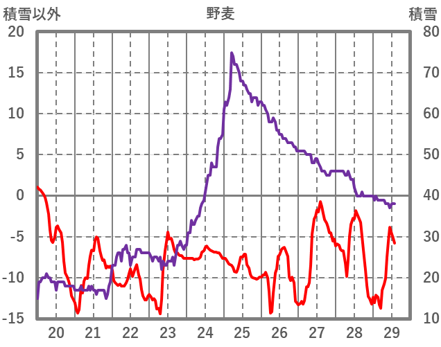 | 日 | 時 | 気温 | 降水 | 風向/風速 | 日照 | 積雪 | 降雪 |