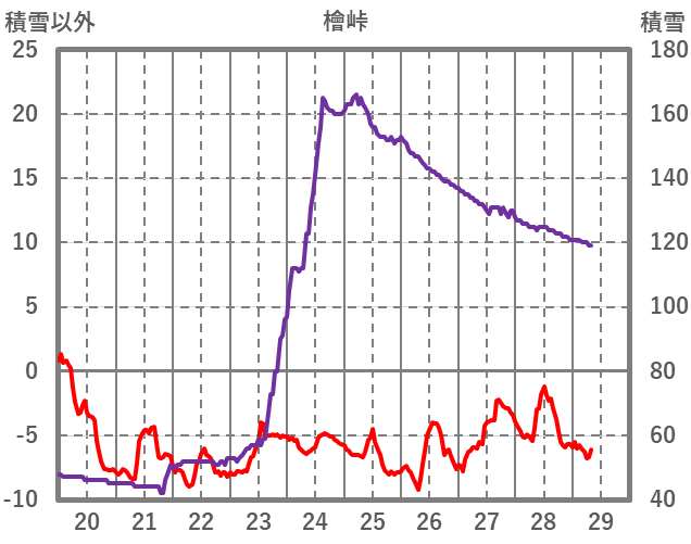 | 日 | 時 | 気温 | 降水 | 風向/風速 | 日照 | 積雪 | 降雪 |