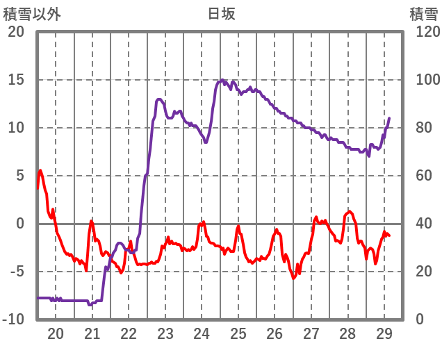 | 日 | 時 | 気温 | 降水 | 風向/風速 | 日照 | 積雪 | 降雪 |
