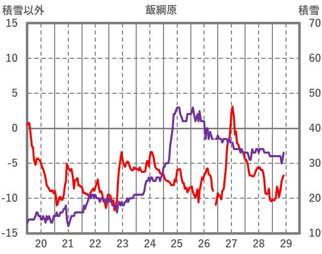 | 日 | 時 | 気温 | 降水 | 風向/風速 | 日照 | 積雪 | 降雪 |