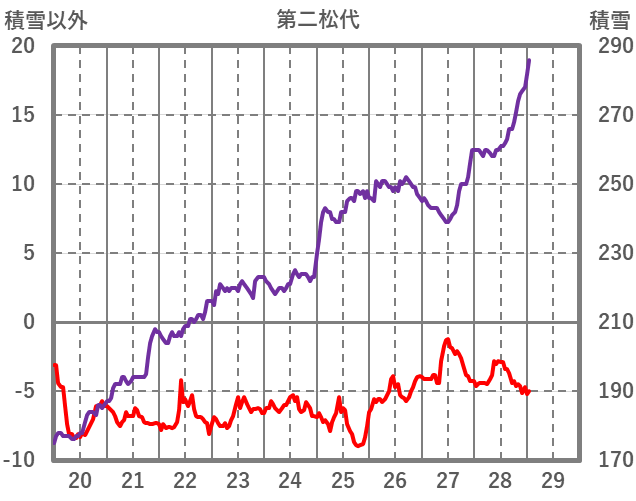 | 日 | 時 | 気温 | 降水 | 風向/風速 | 日照 | 積雪 | 降雪 |