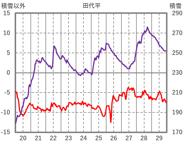 | 日 | 時 | 気温 | 降水 | 風向/風速 | 日照 | 積雪 | 降雪 |