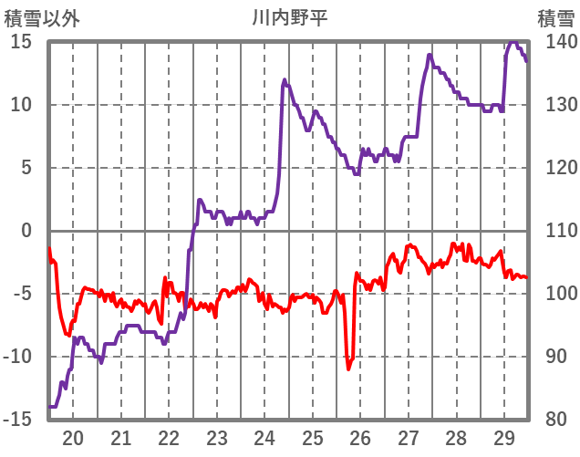 | 日 | 時 | 気温 | 降水 | 風向/風速 | 日照 | 積雪 | 降雪 |