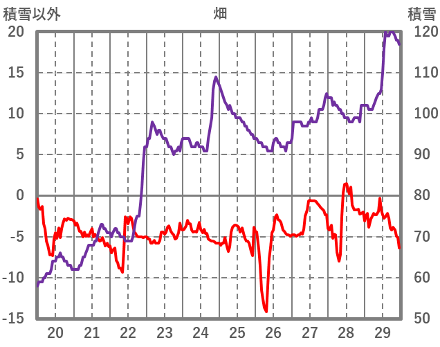 | 日 | 時 | 気温 | 降水 | 風向/風速 | 日照 | 積雪 | 降雪 |