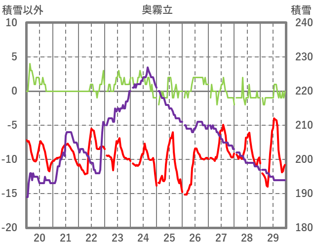 | 日 | 時 | 気温 | 降水 | 風向/風速 | 日照 | 積雪 | 降雪 |