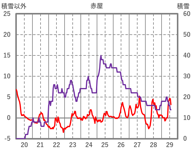 | 日 | 時 | 気温 | 降水 | 風向/風速 | 日照 | 積雪 | 降雪 |