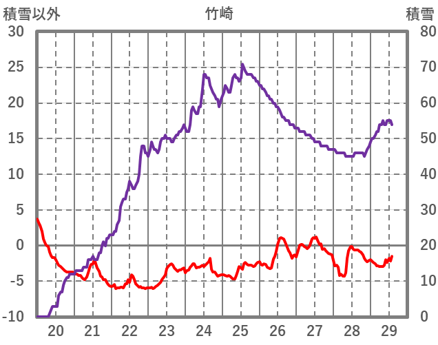 | 日 | 時 | 気温 | 降水 | 風向/風速 | 日照 | 積雪 | 降雪 |