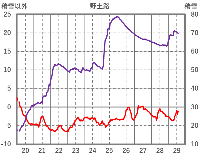| 日 | 時 | 気温 | 降水 | 風向/風速 | 日照 | 積雪 | 降雪 |